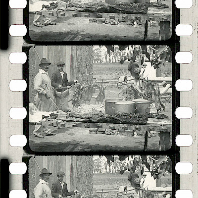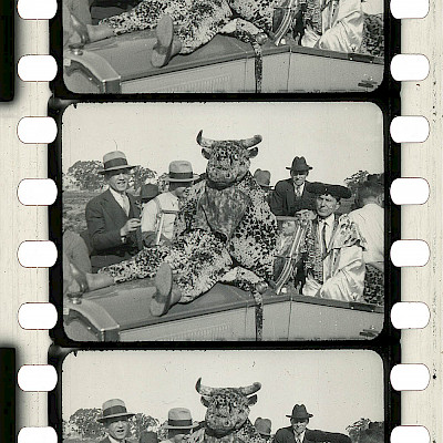 Registro de la celebración organizada por los empleados del Jockey Club para agasajar al nuevo intendente y subintendente de la institución. Banquete con asado, orquestas típicas, bailes, marcado por la presencia de la comunidad de inmigrantes españoles. La jornada concluye con una escena cómica en la que se representa una corrida de toros e incluye a dos asistentes disfrazados de falso toro. Rodado en la Ciudad de Buenos Aires.