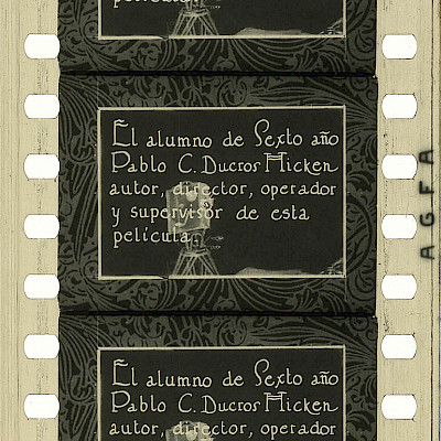 | Nota Archivistica El material no tiene título y fue atribuido por la información suministrada en Barrios Barón, Carlos, “Iniciación del Cine Amateur. Notas para su historia en Argentina”, Fotocámara N°100. El crédito del laboratorio fue atribuido por la información en Ducrós Hicken, Pablo, "Un film como no puede haber otro", Revista El Hogar, 11 de septiembre de 1953. |