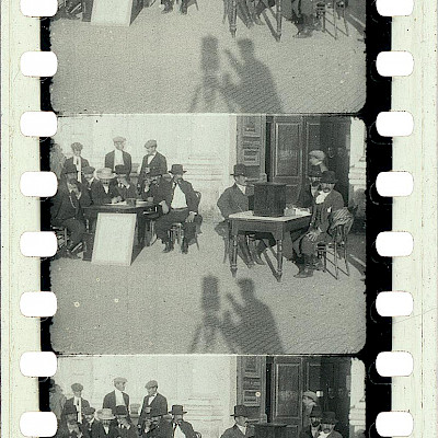 Registro de una jornada electoral. Multitud de hombres a pie y a caballo transitan por calles de tierra en dirección a las urnas. Podría tratarse de suburbios de Buenos Aires o Rosario. Una orquesta acompaña a los electores. Los niños miran a cámara. El recinto de votación al aire libre, en tiempos donde aún el voto no era secreto. La sombra de un camarógrafo se hace visible registrando el lugar a través de un movimiento de cámara panorámico.