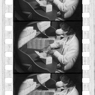 Registro de las actividades de la fábrica de cigarrillos de Fernández y Sust. Descripción detallada de los procesos de armado de cigarrillos, embalaje y distribución. Rodado en la Ciudad de Buenos Aires.