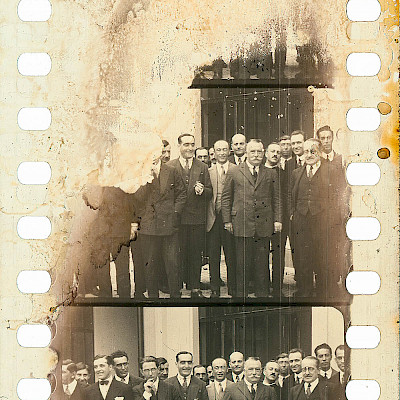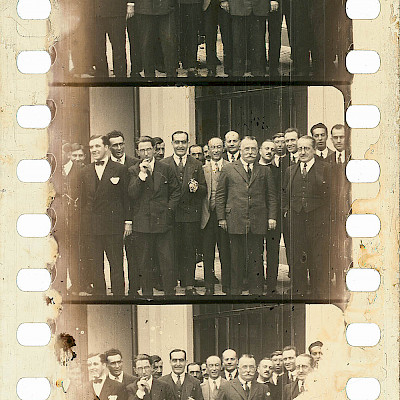 El material, en estado de degradación irreversible, no tiene créditos y la fecha fue atribuida por la marca marginal. Asimismo no es posible confirmar el tipo de teñido debido al estado de degradacion. La identificación del origen alemán fue posible gracias al dato aportado por Fernando Martín Peña.