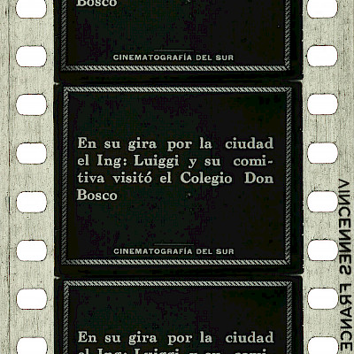 Registro de la visita del senador italiano Ing. Luiggi al Colegio Don Bosco de la ciudad de Bahía Blanca, provincia de Buenos Aires. Lo recibe su director, el reverendo padre Pedro Savani, junto a autoridades y alumnos de la institución.